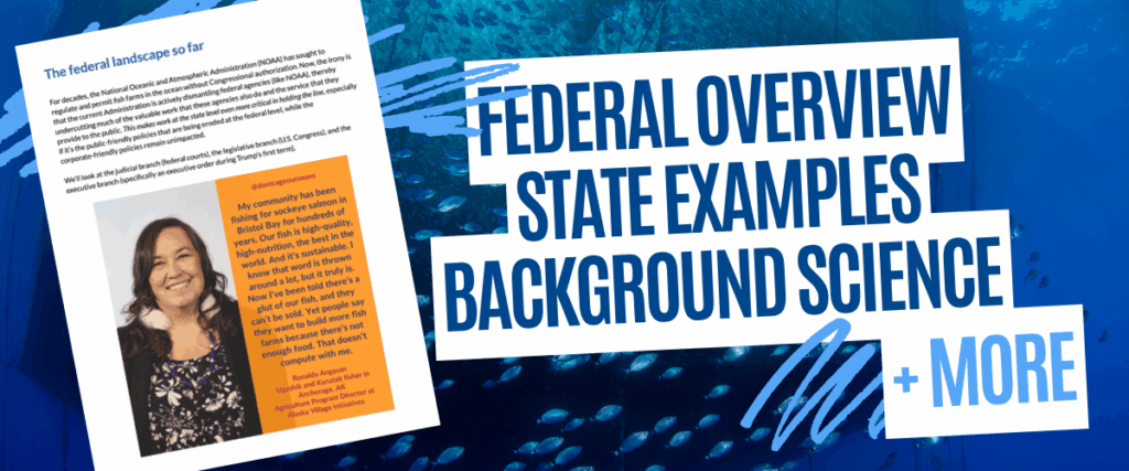“The fight to protect waters and local food systems from large-scale fish farming is ramping up in communities across the U.S. We keep hearing from state legislators who want to safeguard their residents’ livelihoods and keep their state waters from being polluted by the fecal, pathogenic, and toxic wastes emitted from net pens crammed full of farmed fish. This toolkit is designed to help these legislators better understand the issue, offering how-to guides along with sample state policies that illustrate how to protect residents from the socioeconomic and environmental harms caused by industrial-scale aquaculture.”